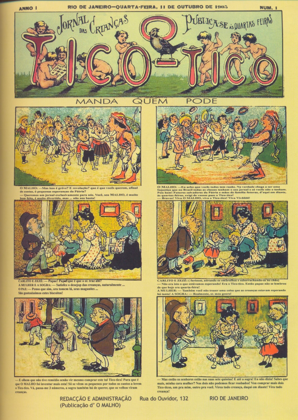 No Brasil, a primeira revista em quadrinhos chamou-se O Tico-Tico e foi publicada em 1905 pelo periódico O Malho.